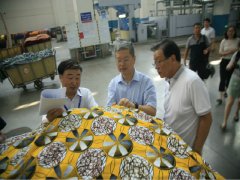 中國(guó)紡織工業(yè)聯(lián)合會(huì)會(huì)長(zhǎng)孫瑞哲(左一)一行在視察,指導(dǎo)企業(yè)發(fā)展