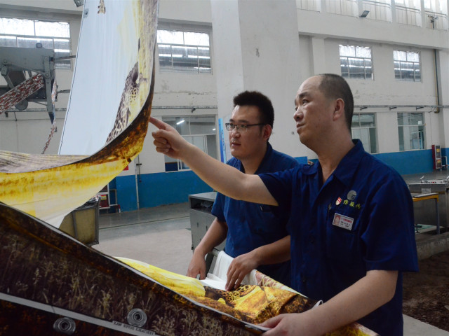 在公司科技產(chǎn)業(yè)園花布平網(wǎng)印制車(chē)間,化料、調(diào)漿、安裝刮刀……孫維生正忙著和同事們進(jìn)行開(kāi)車(chē)前的準(zhǔn)備工作。經(jīng)過(guò)前期安裝和調(diào)試,公司進(jìn)口的兩臺(tái)平網(wǎng)印花機(jī)及相關(guān)配套系統(tǒng)已達(dá)到批量生產(chǎn)的要求和能力。看著用平網(wǎng)印花機(jī)生產(chǎn)出來(lái)的花布產(chǎn)品,大家在心里為公司未來(lái)的發(fā)展更加充滿了信心。
