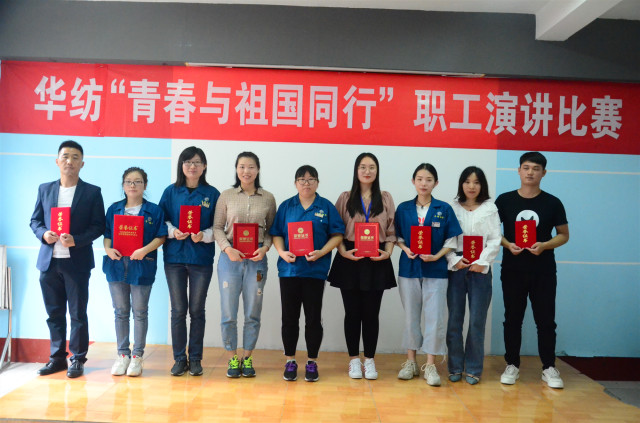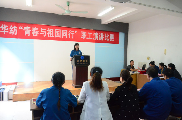 導讀:9月19日,公司舉辦主題為“青春與祖國同行”職工演講比賽,九位選手用款款深情的講述,詮釋了華紡員工熱愛祖國、傾心事業的情懷。