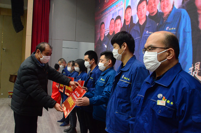 1月16日,公司在嚴(yán)格規(guī)范疫情防控前提下,在公司新近啟用的會(huì)議中心舉行了年度持續(xù)深化精益生產(chǎn)總結(jié)會(huì)議。會(huì)上,公司黨委書(shū)記、董事長(zhǎng)王力民為2020年度優(yōu)秀黨支部、優(yōu)秀團(tuán)隊(duì)、優(yōu)秀研發(fā)團(tuán)隊(duì)、勞動(dòng)模范、戰(zhàn)疫優(yōu)秀員工代表頒獎(jiǎng);總經(jīng)理閆英山為“華紡工匠”、十佳精益輪班(工段)長(zhǎng)、十佳精益技術(shù)人員、十佳精益操作能手、優(yōu)秀員工代表頒獎(jiǎng);副總經(jīng)理李風(fēng)明為優(yōu)秀CQI項(xiàng)目、創(chuàng)新攻關(guān)項(xiàng)目、優(yōu)秀精益機(jī)組頒獎(jiǎng)。王力民做了題為《同心同德  繼往開(kāi)來(lái)》的年度工作報(bào)告。會(huì)議由公司團(tuán)委書(shū)記陳冰主持。