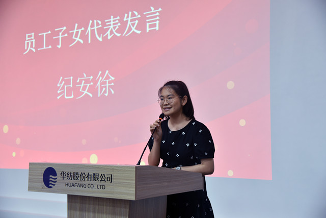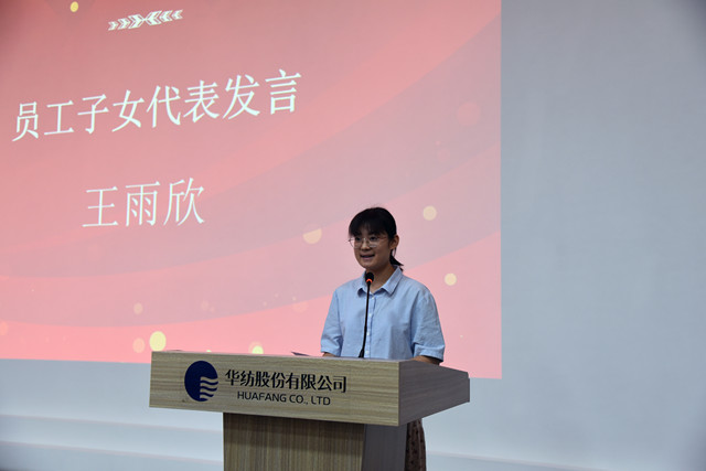 員工子女代表紀安徐、王雨欣在發言中,對家庭和公司表達了感激之情,并結合自身的學習情況談了個人的感受和對未來的憧憬。營銷管理部部長楊霞作為家長代表發言,她表示,公司對員工家庭的關心,讓大家深深感受到華紡大家庭的溫暖,也享受到了公司發展的成果。
