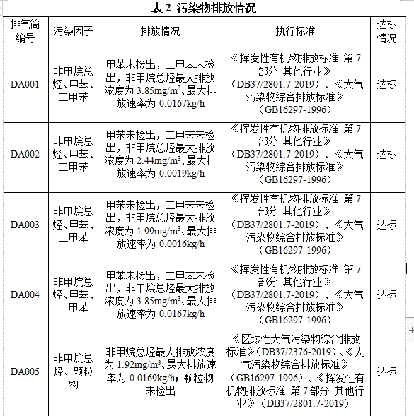 根據華紡股份有限公司自行檢測報告可知,廠區現有項目污染物排放情況見表2。