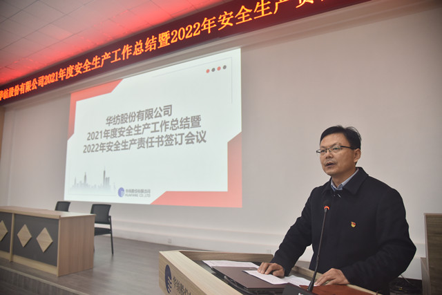 2月10日,公司召開春節長假后的“第一會”,主題為總結2021年度安全生產管理暨簽訂《2022年安全生產責任狀》。會議由總經理閆英山主持,副總經理、安全總監孫中然對安全生產工作進行了總結與部署。黨委副書記、董事長盛守祥分別與閆英山、孫中然簽訂《2022年安全生產責任狀》;總經理閆英山分別與面料車間主任曹劍、花布車間主任劉國鋒、家紡車間主任王旭洲、家紡成品車間主任董魯波、服裝車間主任晁金光、熱力公司經理劉新利、動力公司經理秦鴻章簽訂《2022年安全生產責任狀》。盛守祥圍繞企業安全生產與整體發展的重要關系,做了重要講話。
