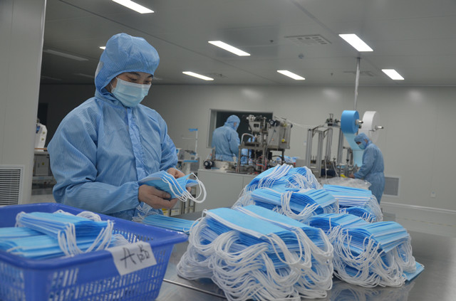 圖為公司清潔車間員工生產口罩的情形。