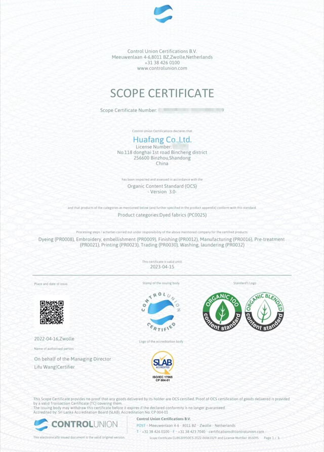 公司積極響應國家發展改革委、商務部、工業和信息化部《關于加快推進廢舊紡織品循環利用的實施意見》,根據全球有機紡織品GOTS/OCS及全球回收標準GRS等國際相關標準, 2022年于3月份通過權威機構的現場審核,順利取得GOTS/OCS/GRS證書。