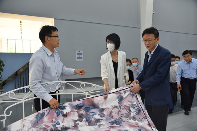 調(diào)研組一行先后到公司智云中心、檢測(cè)中心、綜合辦公區(qū)、服裝面料展廳、花布展廳、家紡展廳、創(chuàng)意設(shè)計(jì)中心、工程技術(shù)研究院、花布車間生產(chǎn)現(xiàn)場(chǎng)等實(shí)地調(diào)研,詳細(xì)了解了企業(yè)運(yùn)行、市場(chǎng)營(yíng)銷、科技創(chuàng)新、戰(zhàn)略規(guī)劃等情況,詢問企業(yè)發(fā)展過程中遇到的問題和困難,并聽取了公司董事長(zhǎng)盛守祥對(duì)公司總體生產(chǎn)經(jīng)營(yíng)情況的匯報(bào)。調(diào)研組對(duì)公司多年來(lái)的發(fā)展成績(jī)給予了充分肯定,并表示華紡公司多年來(lái)深耕紡織印染領(lǐng)域,不斷做大做強(qiáng)、是一家高質(zhì)量發(fā)展、成長(zhǎng)性良好的企業(yè);同時(shí),企業(yè)在發(fā)展的過程中積極履行社會(huì)責(zé)任,體現(xiàn)了企業(yè)的社會(huì)擔(dān)當(dāng)。