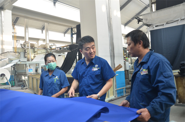 公司面料車間后處理甲班現有員工42人,其中女工16名,輪班長為41歲的崔向華,這是一個戰斗力強、高效執行的團隊。該輪班自2013年5月創建以來,提出提升班組綜合能力與水平;特別是近年來,他們深入開展單機效率提升競賽活動,整體工作以安全生產為保障,以精益生產為主線,以打造富有自身特色的班組文化和創造高質量為目標,使本輪班的主要生產技術指標在全公司同序列輪班(工段)考核中名列前茅。