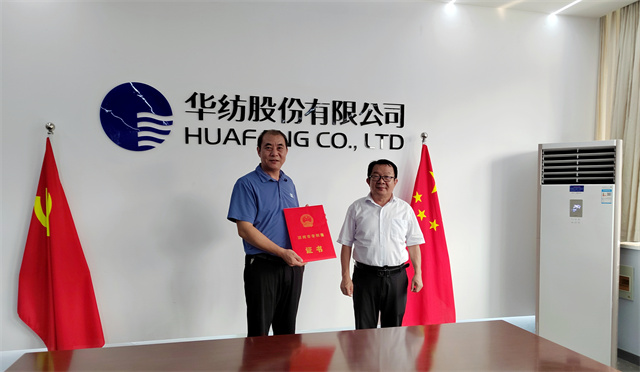 導讀:9月13日,濱城區市場監督管理局黨組書記、局長宋純杰一行蒞臨華紡指導工作,向公司頒發了濱州市專利獎證書。