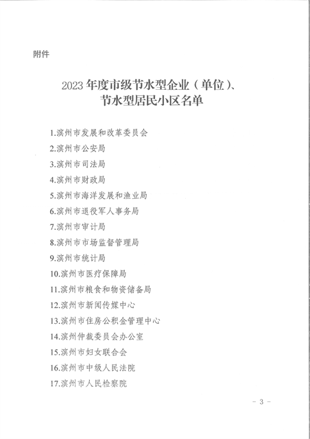 導讀:近日,濱州市城鄉水務局、濱州市發展和改革委員會、濱州市工業和信息化局、濱州市住房和城鄉建設局、濱州市機關政務保障中心發布了《關于公布2023年度市級節水型企業(單位)、節