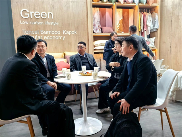 展會首日,中國紡織工業(yè)聯(lián)合會副會長楊兆華等領(lǐng)導(dǎo)專程到華紡股份展位參觀指導(dǎo)。領(lǐng)導(dǎo)們認(rèn)真聽取了家紡公司總經(jīng)理成汝海對家紡產(chǎn)品的介紹,仔細(xì)觀看了解了各類展品。楊兆華副會長對華紡股份有限公司在產(chǎn)業(yè)升級、產(chǎn)品結(jié)構(gòu)調(diào)整方面取得的成績給予了充分肯定,希望公司繼續(xù)加大研發(fā)投入,提升產(chǎn)品科技含量和附加值,進(jìn)一步加強(qiáng)品牌建設(shè),提高中國家紡產(chǎn)品在國際市場的知名度和影響力。