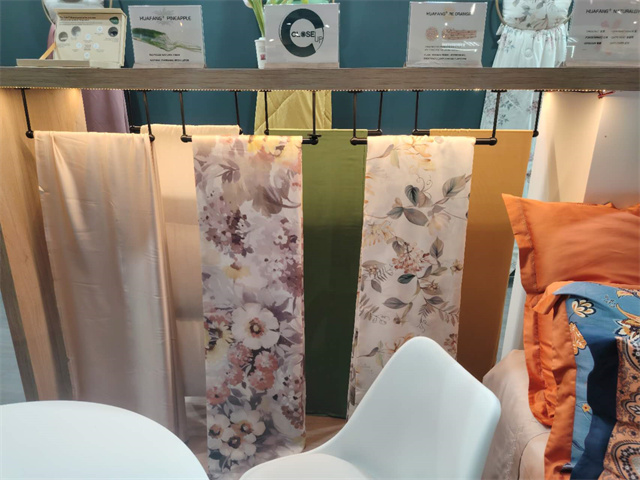 此屆法蘭克福家紡展,華紡股份家紡分公司打造了以“Green world”為主題,以綠色環(huán)保可持續(xù)的特色纖維產(chǎn)品為主材質(zhì),研發(fā)了醋酸系列/真橙系列/木棉系列/絲質(zhì)系列/超柔系列/麻系列六大系列產(chǎn)品,從材質(zhì)、功能、膚感、科技、花型、款式等多方面對產(chǎn)品進(jìn)行了融合升級,吸引了來自法國、意大利、葡萄牙等諸多國家的客戶進(jìn)入展位進(jìn)行咨詢洽談!其中,迎合歐洲市場喜好的亞麻、漢麻提花、色織簡約條紋產(chǎn)品也成功吸引了來自歐美的客戶。