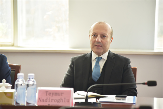 盛守祥對特穆爾·納迪羅格魯公使一行的到訪表示熱烈歡迎,并詳細介紹了公司的發展歷程、產業布局以及未來產業發展戰略。他表示,阿塞拜疆作為“一帶一路”沿線重要國家,地理位置優越,資源豐富,市場潛力巨大,希望以此次訪問為契機,進一步加深了解,探尋合作機遇,實現互利共贏。