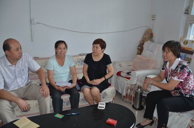 市總工會幫扶中心主任孫戰洪、市總工會法律保障部主任左麗華等到華紡公司職工家中慰問。