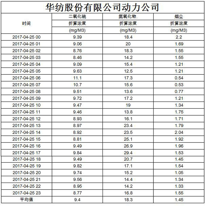 煙氣排放數(shù)據(jù)信息公開2017.4.25數(shù)據(jù)
