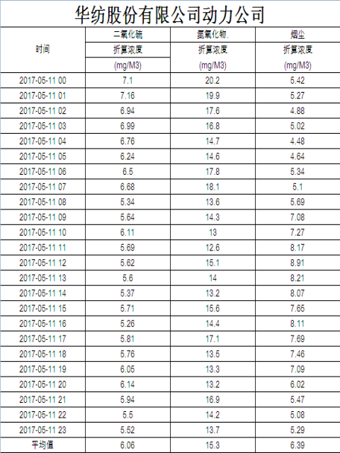 煙氣排放數(shù)據(jù)信息公開2017.5.11數(shù)據(jù)