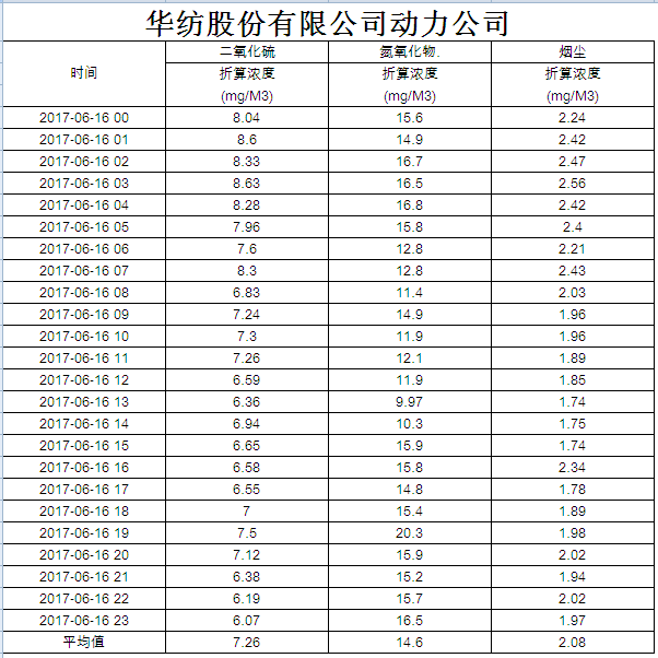 煙氣排放數據信息公開2017.6.16數據