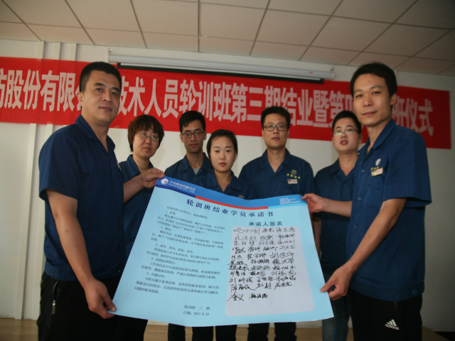 6月18日,公司技術(shù)人員輪訓(xùn)班第三期的35名學(xué)員正式結(jié)業(yè)。輪訓(xùn)結(jié)束后,他們將回到各自工作崗位,把輪訓(xùn)期間所學(xué)知識(shí)運(yùn)用于專業(yè)技術(shù)實(shí)踐當(dāng)中。為做好一名專業(yè)技術(shù)人員的本職工作,他們分別在承諾書上簽下各自的名字,從態(tài)度、使命、學(xué)術(shù)作風(fēng)、流程標(biāo)準(zhǔn)和問題分析等五個(gè)方面做了鄭重承諾。他們表示,在承諾書上簽下自己的名字,等于是表明從“我該干”為“我要干”的態(tài)度的轉(zhuǎn)變。