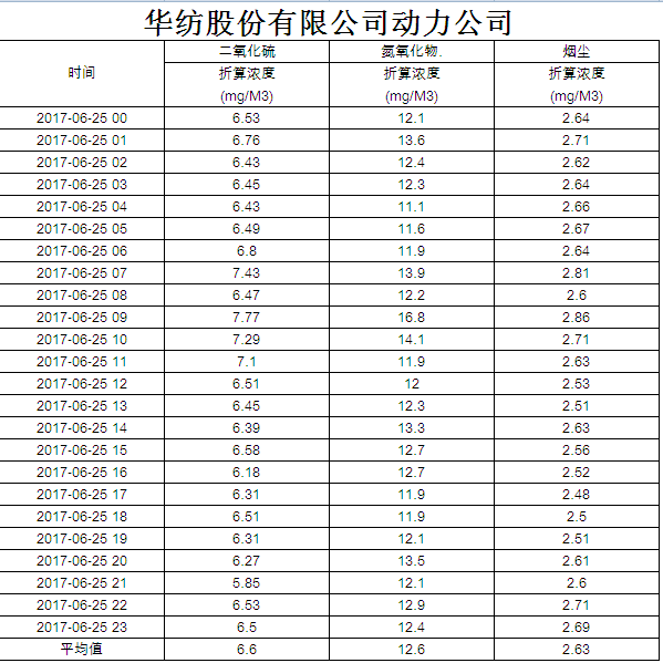 煙氣排放數據信息公開2017.6.25數據