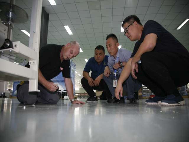 目前,公司正在緊鑼密鼓地實施兩條床單自動化生產線的引進安裝工作。在安裝技術裝備過程中,參與這項工作的員工與德國技術人員緊密配合,加快了裝備安裝進度和技術消化力度。整個項目預計10月中旬完成,屆時家紡產品結構將得到進一步優化調整。
