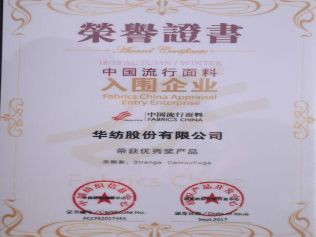公司一直以來注重產(chǎn)品設(shè)計、研發(fā)與創(chuàng)新,建立起以市場需求為導(dǎo)向的產(chǎn)品開發(fā)體系;再度入圍流行面料企業(yè),彰顯了公司在紡織產(chǎn)品開發(fā)能力的進(jìn)一步提升。