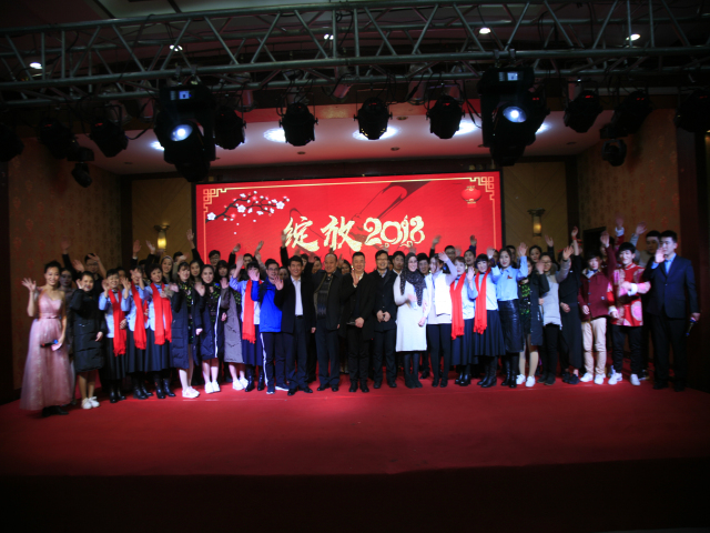 晚會結(jié)束后,公司總經(jīng)理閆英山等公司領(lǐng)導(dǎo)與參加演出的員工合影;來自突尼斯的天津工業(yè)大學(xué)見習(xí)生琺嘟娜受邀登臺,參加了合影。