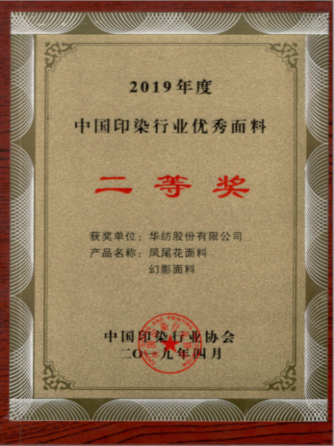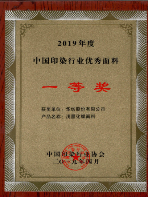 在剛剛結束的由中國印染行業協會舉辦的2019年度“中國印染行業優秀面料”評選活動中,公司3套作品從參評的384個產品中脫穎而出,獲得表彰。其中,淺墨化蝶面料產品獲得一等獎,鳳尾花面料和幻影面料獲得二等獎,這也是公司面料產品再一次獲得行業表彰和認可。